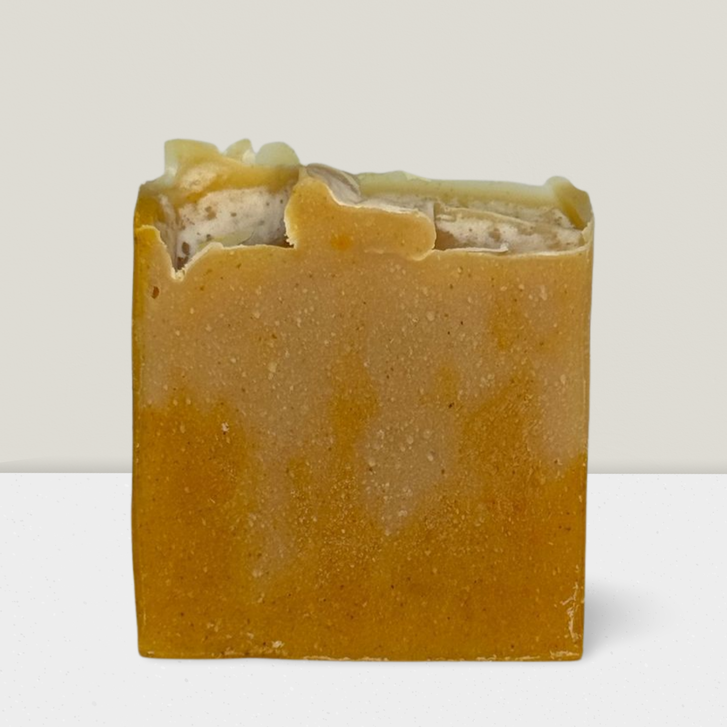 Ingredients: Lard, Coconut Oil, Distilled Water, Goat Milk, Lye, Shea Butter, Olive Oil, Castor Oil, Turmeric, Annatto Seed, Honey, Colloidal Oatmeal, Kaolin Clay, Essential Oils