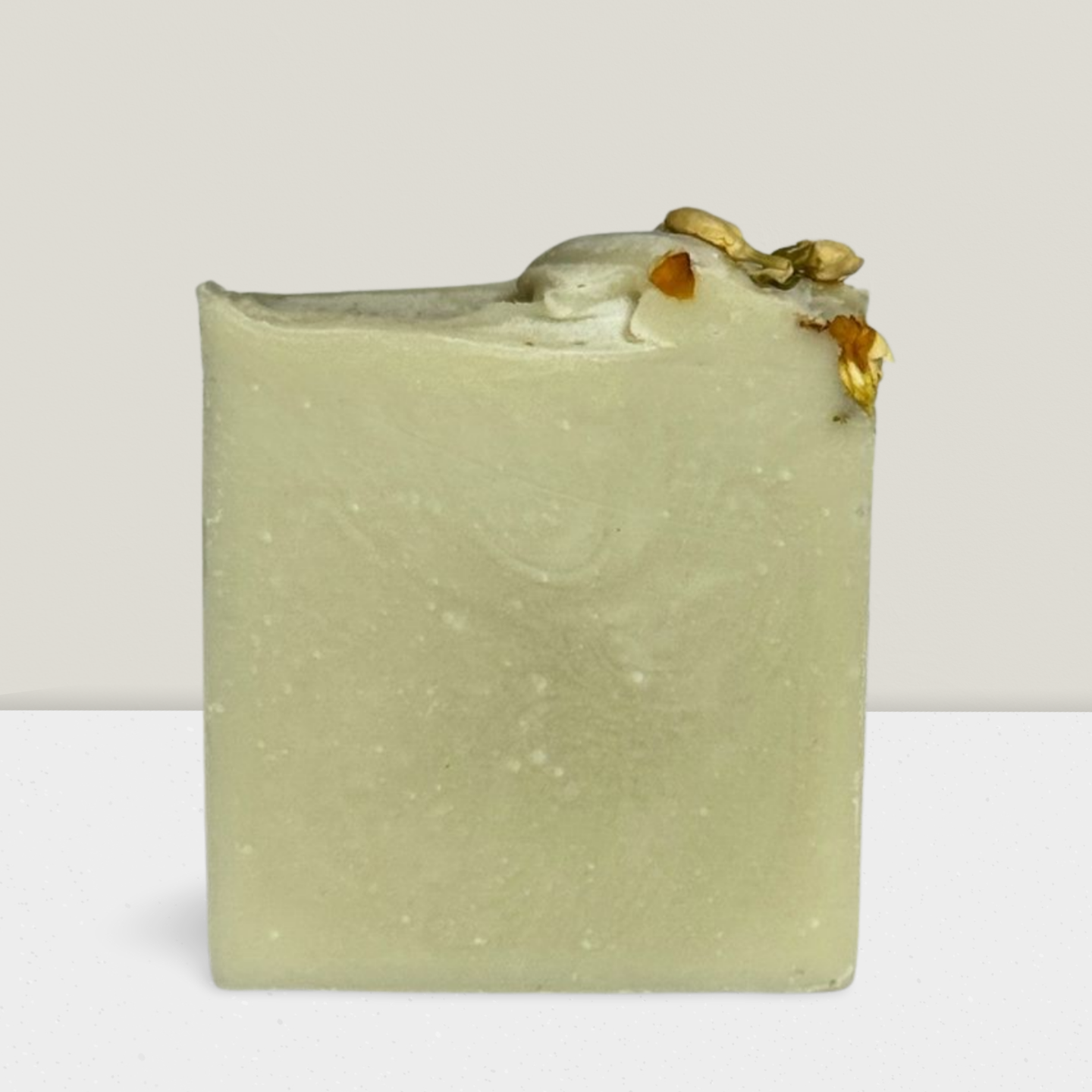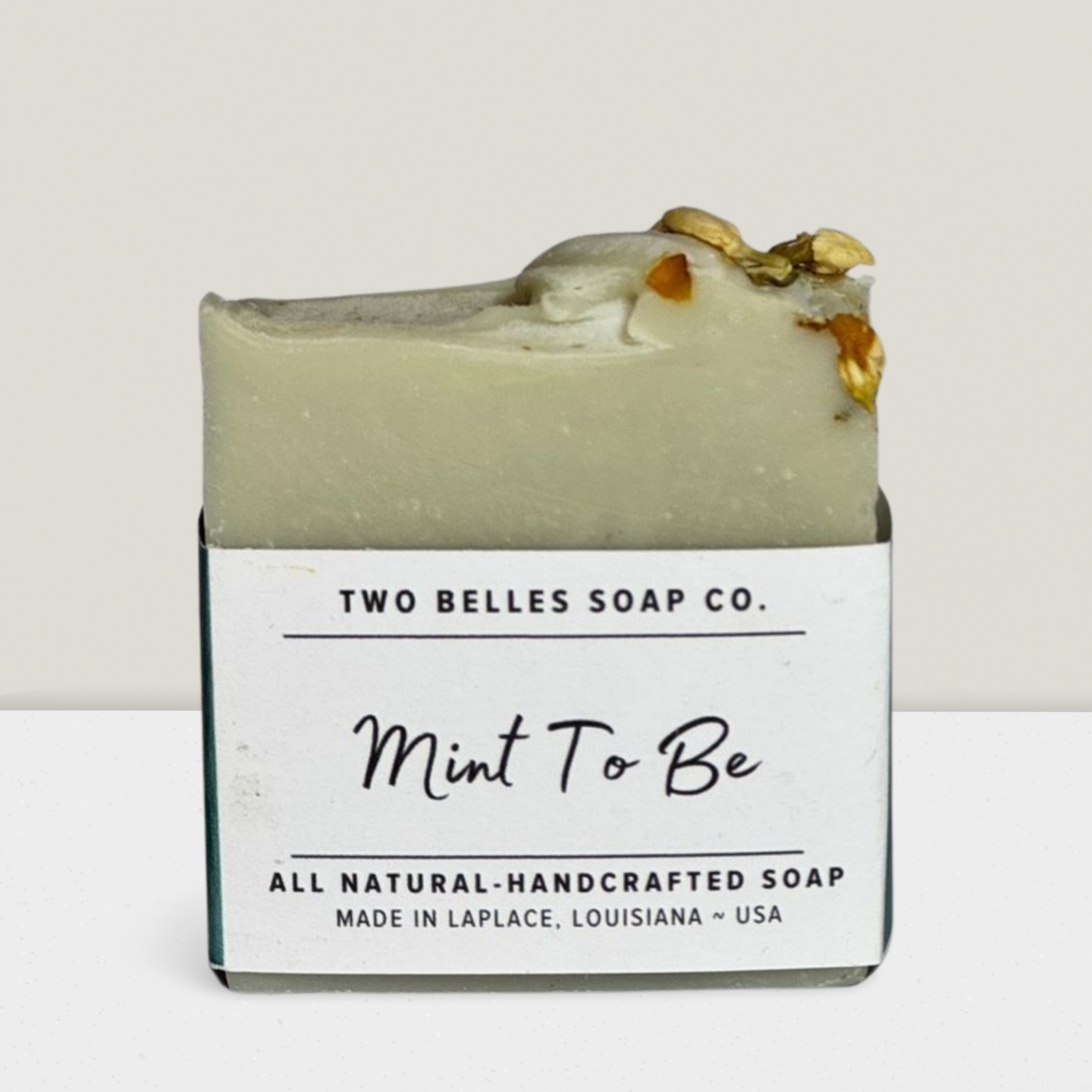 Cool and uplifting, Mint To Be is a light blue‑green bar topped with white jasmine flowers. Its refreshing blend of spearmint, eucalyptus, and lemon leaves skin soft, clean, and invigorated with every wash.