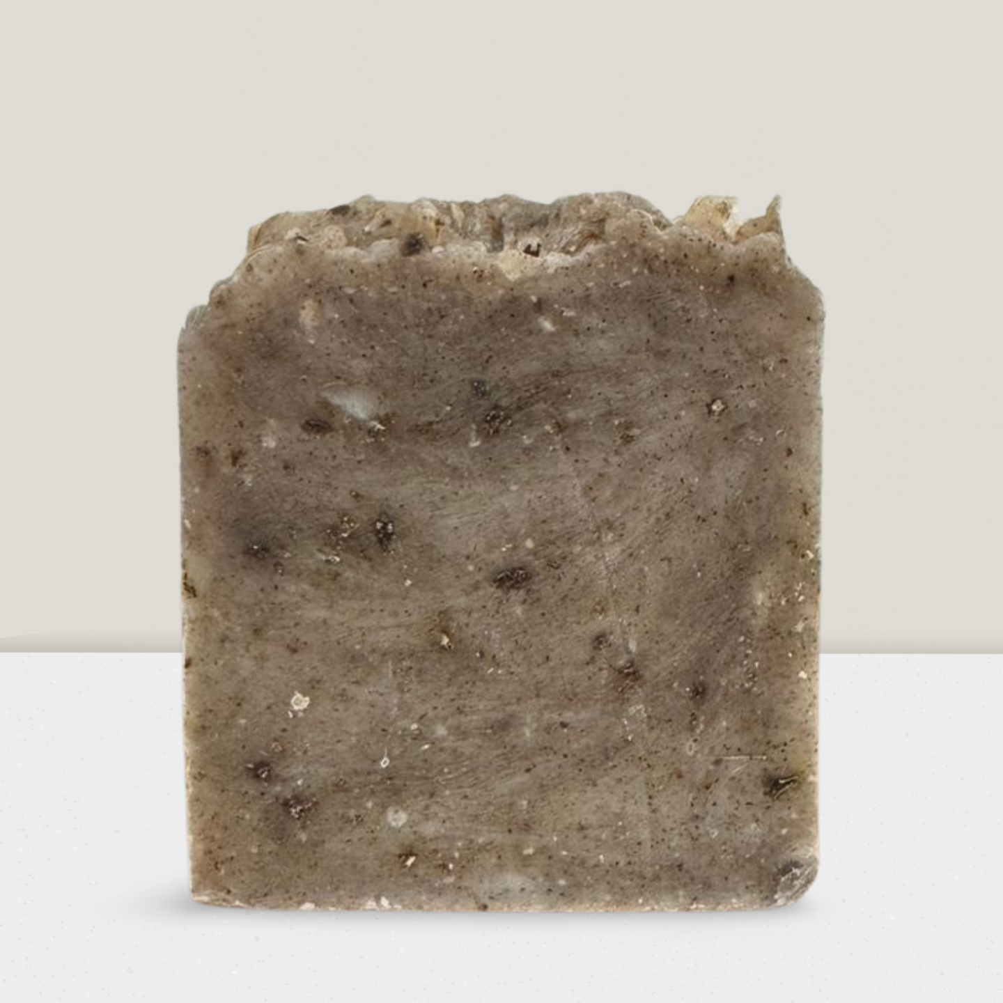 Ingredients: Olive Oil, Distilled Water, Coconut Oil, Shea Butter, Lye, Castor Oil, Cocoa Butter, Pumice, Walnut Shell, Rosemary, Bentonite Clay, Essential Oils